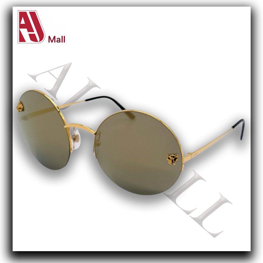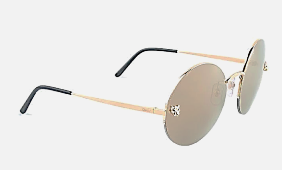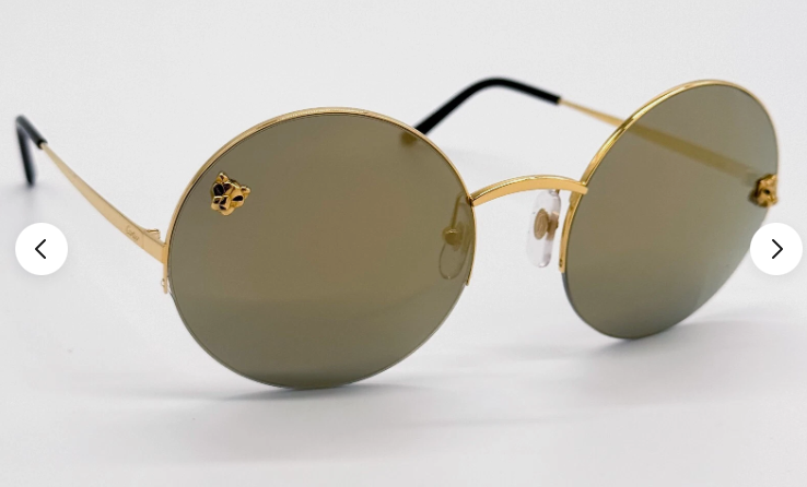 Lunettes de Soleil Rondes Style Luxe – Monture Dorée & Détail Panthère