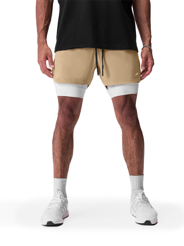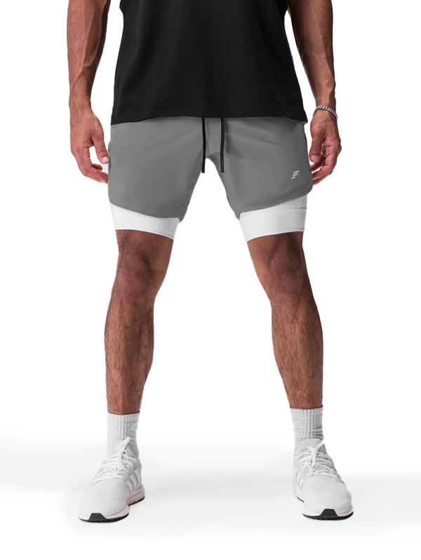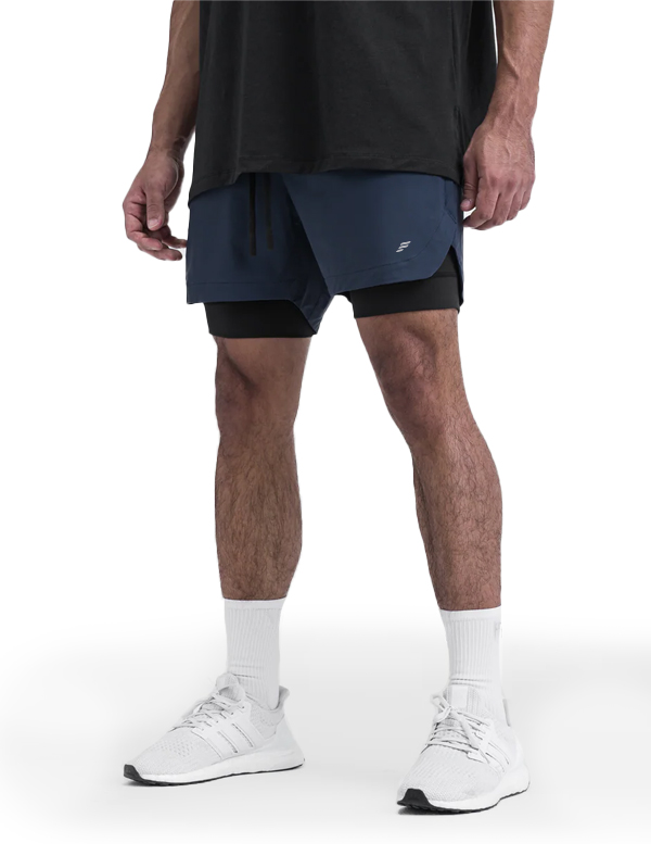 Short de sport 2-en-1 avec compression intégrée, offrant maintien et liberté de mouvement. Conçu dans un tissu respirant et extensible, idéal pour la course, l’entraînement ou le fitness. Taille élastique avec cordon de serrage et poches latérales pratiques. Design moderne avec logo discret sur la jambe gauche.