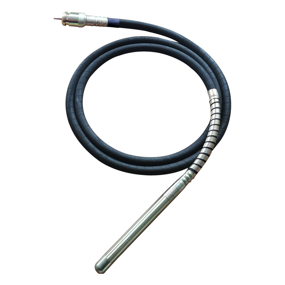 Tuyau flexible de vibreur à béton équipé d’une aiguille de 45 mm de diamètre, conçu pour assurer une vibration efficace du béton frais et éliminer les bulles d’air. Idéal pour les travaux de coffrage et les chantiers de construction, garantissant un béton dense et homogène.